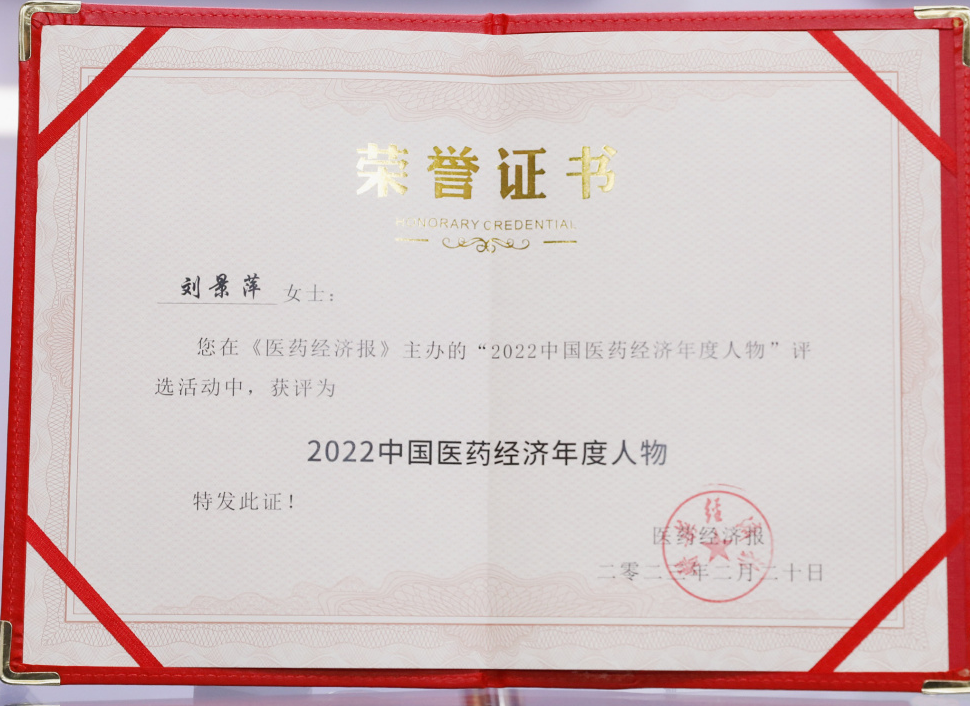 3003新葡的京药业集团董事长刘景萍当选“2022中国医药经济年度人物”